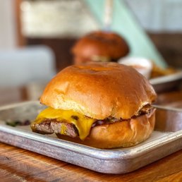 Great gem of a restaurant and cafe (and bar) - the space itself sits on a massive lot that has a cafe/bakery/restaurant in the front with a massive outdoor space with about 10-15 tables, the space has mist fans and is relatively covered to keep you cool on hot days. Their happy hour is bangin', highly recommend you try their double smash burger (on par w NADC), fries lacked seasoning in my opinion. Also had their vanilla bean soft serve - very tasty, just what I needed on a scalding day. Service was great, you order via a QR code, it's easy. Decent amount of space inside, outlets too which could make this spot great for wfh. Lastly, there's an awesome back bar with TV's and AC, epic.