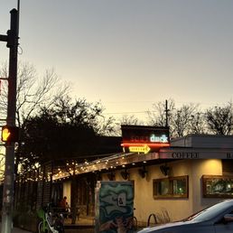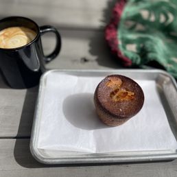 Sour Duck Market is an Austin must! I went on a hot early Saturday morning and was worried about the heat. No worry needed! There was plenty of shade, misters and and indoor bar area to the back. I enjoy the scan the menu and order format. The service was timely even on a busy Saturday morning. I ordered a cortado and a chicken brunch item whose name slipped my mind as I enjoyed the meal so much. The combination of fried chicken, corn compote and squash with an over easy egg was amazing! The freshness and quality was savored in every bite. The cortado was so amazing in flavor I ordered a second. For dessert we got the pistachio pinwheel and lemon loaf which after our meal we saved for later in the day. The ambiance was somewhere I see brining people who are visiting to get the true Austin experience. Along with a great date night, friend meet up or family hang out spot. All in all sour duck market is a new favorite spot for us.